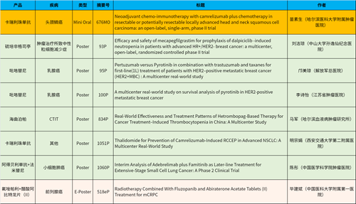在头颈肿瘤、乳腺癌、肺癌、前列腺癌等多个疾病领域,卡瑞利珠单抗、阿得贝利单抗、吡咯替尼、氟唑帕利、法米替尼、醋酸阿比特龙片(II)等抗肿瘤新药相关研究一共入选了1项简短口头报告、4项壁报展示和1项电子壁报,彰显了九游会ag医药强劲的研发实力。此外,九游会ag医药自主研发的血小板生成素受体激动剂(TPO-RA)海曲泊帕在肿瘤治疗所致血小板减少领域、新一代长效G-CSF产品硫培非格司亭在肿瘤治疗所致中性粒细胞减少症领域各入选1项壁报展示。